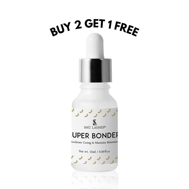Shu Lashes Super Bonder is an amazing product that help ANY lash glue cure fast and increase your retention by 30%. Apply it where the adhesive is bonded to the natural lashes and the bonder cures from the outside to the inside of the bond. With our new formula, the lash glue will rapidly cure the extension to the natural lash, without the effects of blooming (extensions turing white from shock curing)